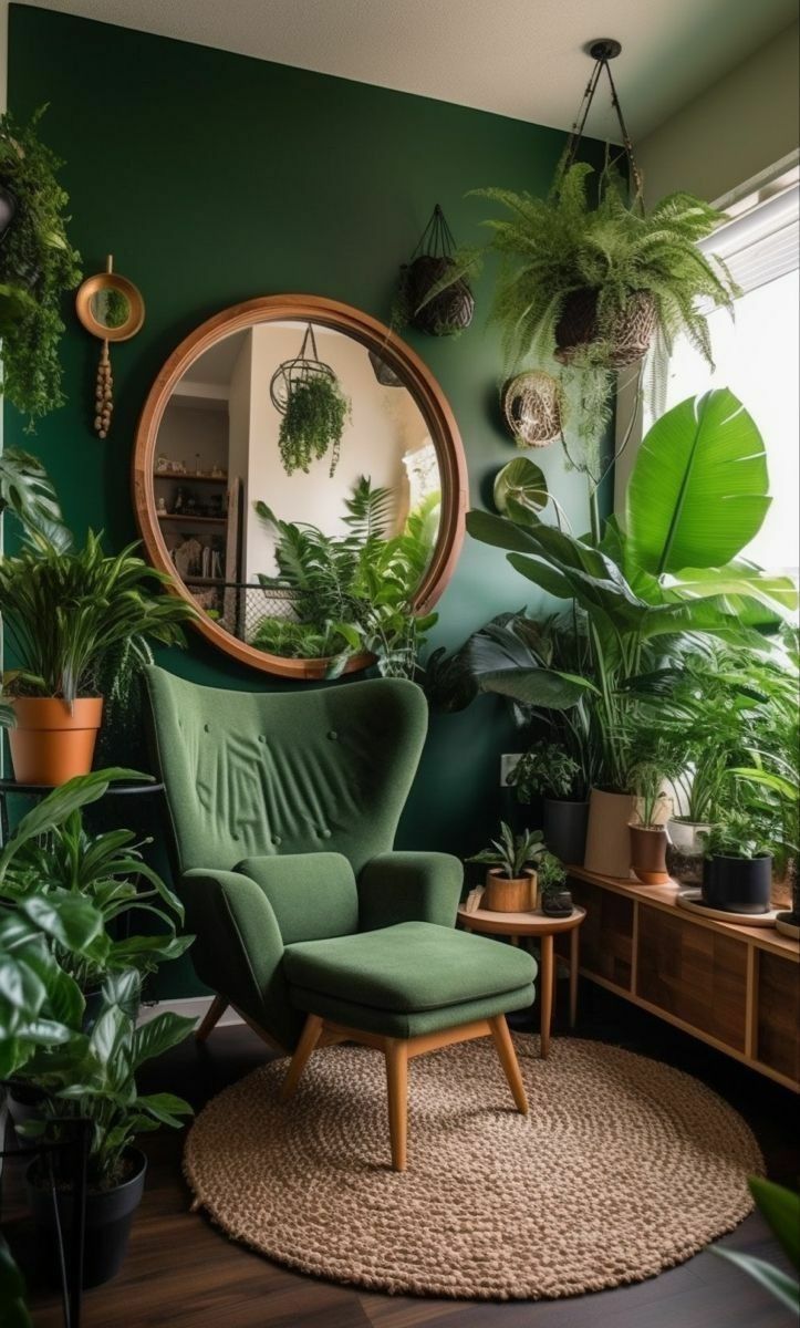 В интерьере зелёный цвет успокаивает, умиротворяет и настраивает на продуктивную деятельность.